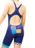 - The entry system differs from traditional trisuits accessing the garment through the lower back strap.