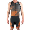 Newly improved Performance level suit, goes on as one piece, “jersey” fully opens over the short. Improved chamois, improved zipper, seaming, and pocketing. Sleeves and legs have soft gripper material that stays in place. Designed for mid-distance races, to give athletes the support they need without interfering with performance.